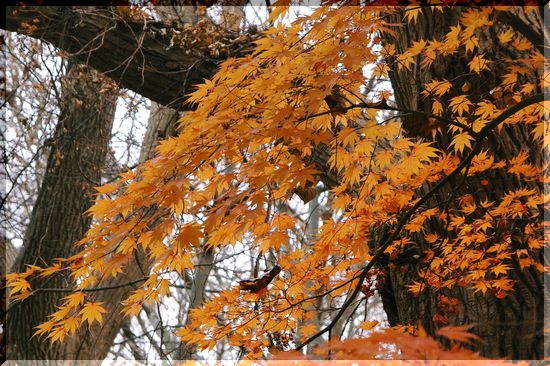 ところどころに色づいた葉が残っています。