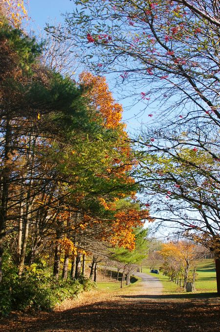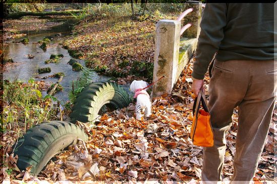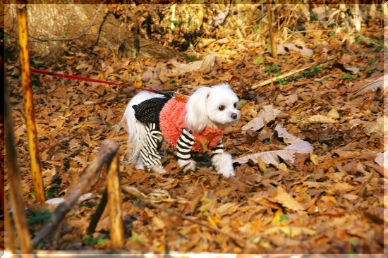 静かな林の中を、落ち葉を蹴散らしながらのお散歩です。