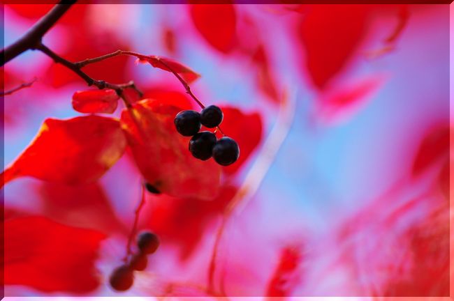真っ赤な葉の間に見える黒い実が、目を惹きました。
