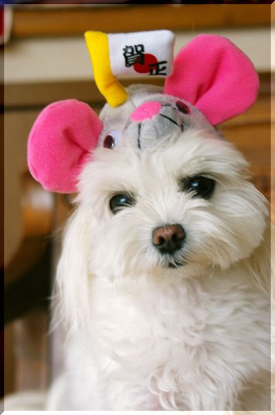 めでたい「賀正」の旗つきねずみの被り物!