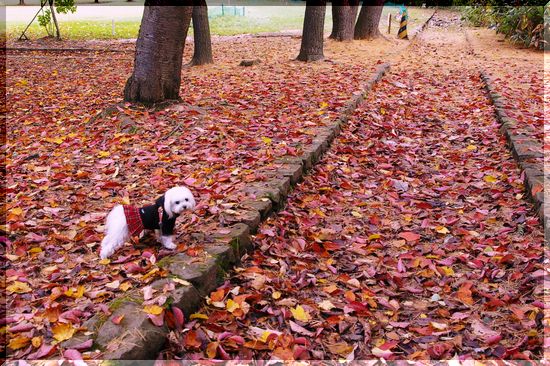 落ち葉の海にダイビング~!・・・は、しませんでした~(爆)