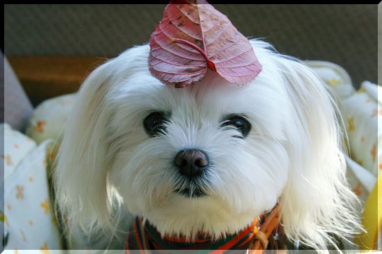 ほっぺに枯葉が絡まってます(笑)