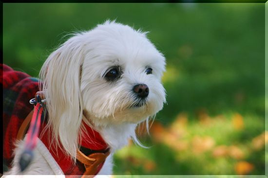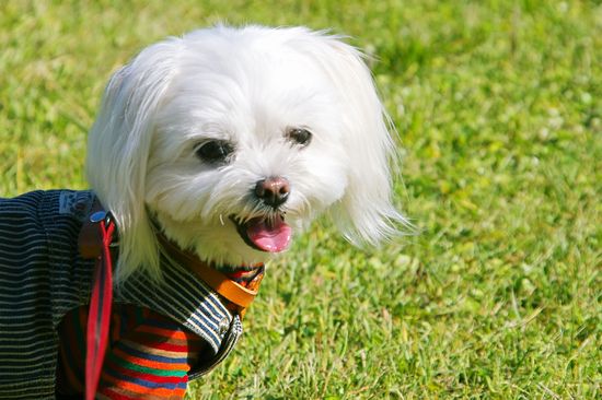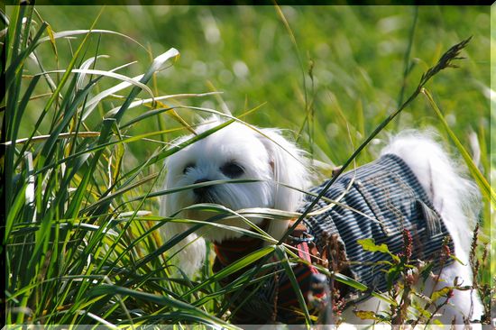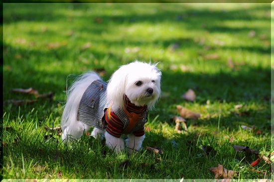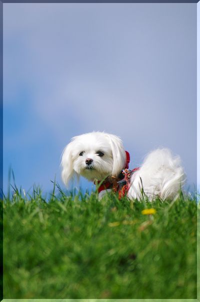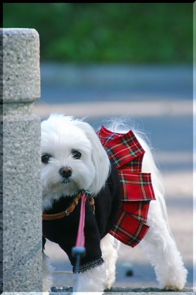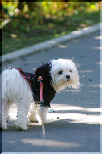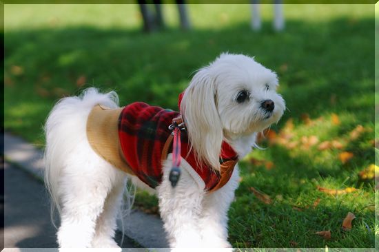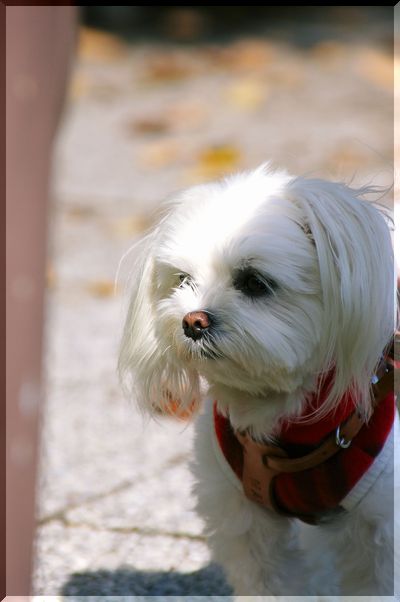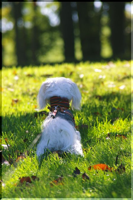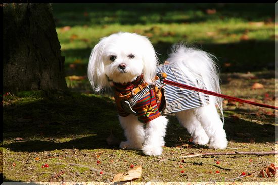 気持ちのいい日差しの中を、シーズーくんがお散歩しています。