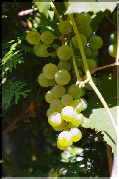 向かいの家の塀の中に、美味しそうなブドウが見えました!