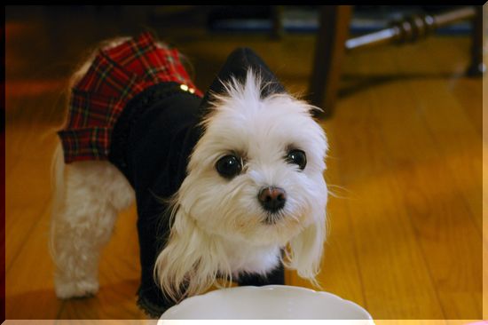 お出かけ前のマミ、服を着せたらこんな反抗的な顔をして