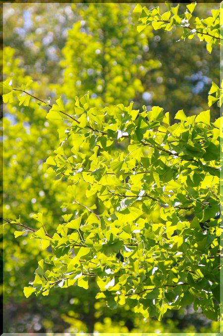 秋の陽を浴びて、イチョウの葉がキラキラ~♪