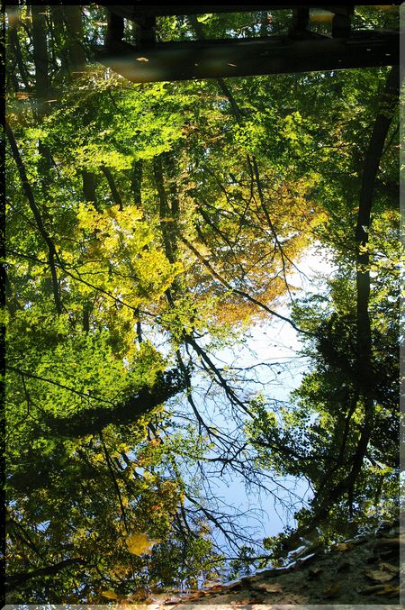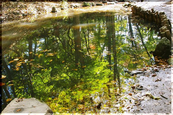 小さな池に映りこむ木々。