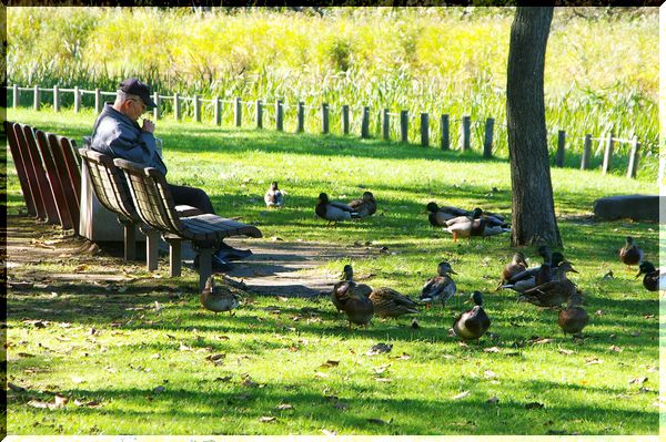 今日もおじさんに、パンをもらっていた鴨たちです。