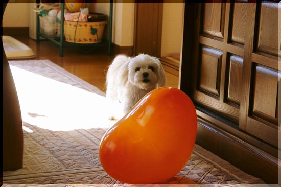 ひとしきり風船に向かって吠えた後は、