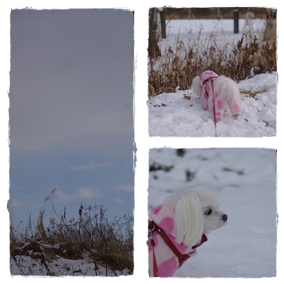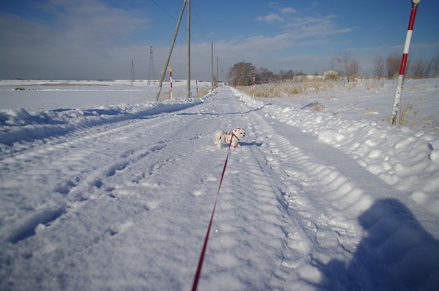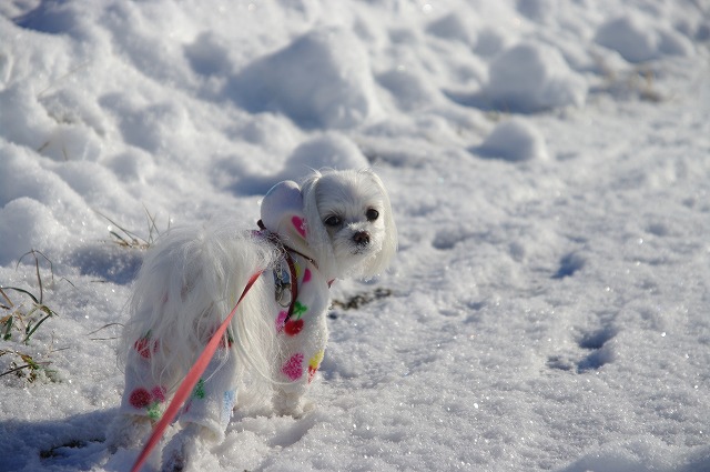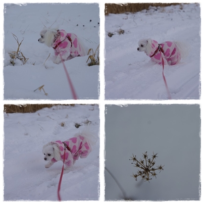 今日は雪玉のお土産をあんよに付けて、ご帰還です。