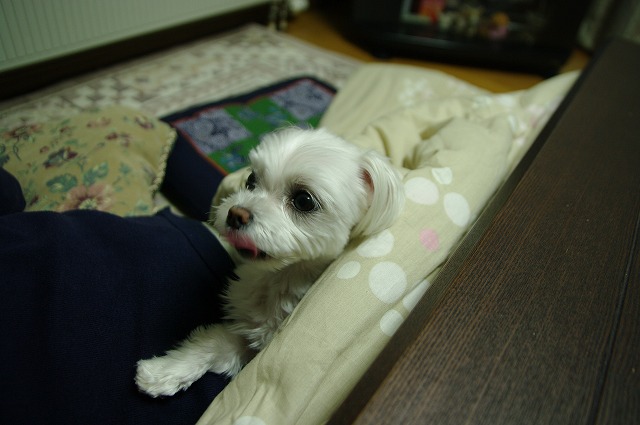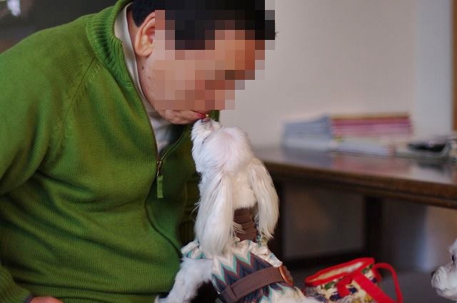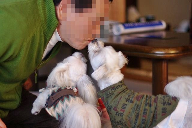 マル吉君も、お父さんの唇(おやつ)を奪いにやってきましたよ。