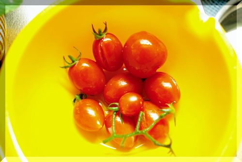 真っ赤なミニトマト&穴だらけのミニ青梗菜♪