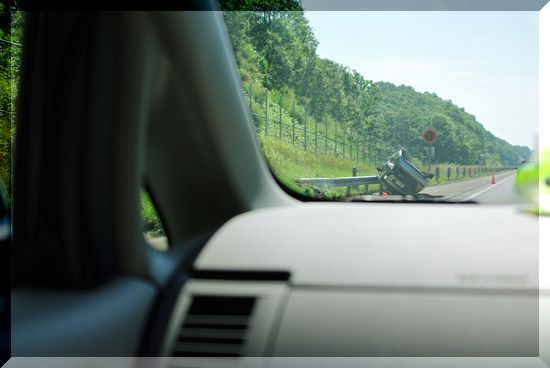 苫小牧に向かう高速道路上に、ひっくり返ってる車が!