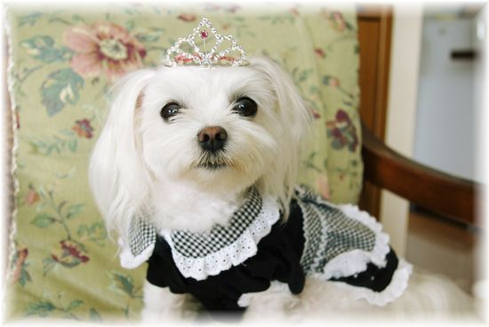 昨日のメイド服を着せて、もう一度ティアラにチャレンジ!