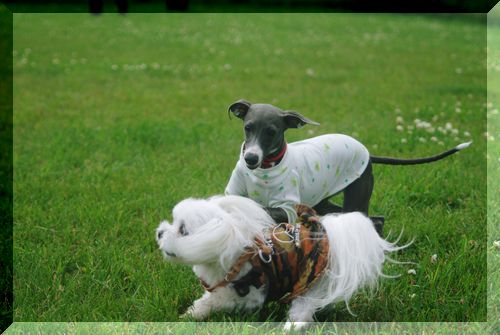 後からやってきたワンちゃんに、さらちゃんと一緒に執拗に迫るマミ(爆)