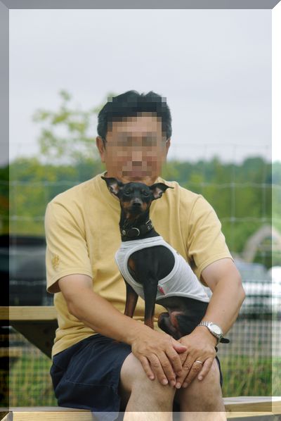 今日初めて会ったのに、なんだかとっても父のことが気に入ったみたいなミニピンくん♪