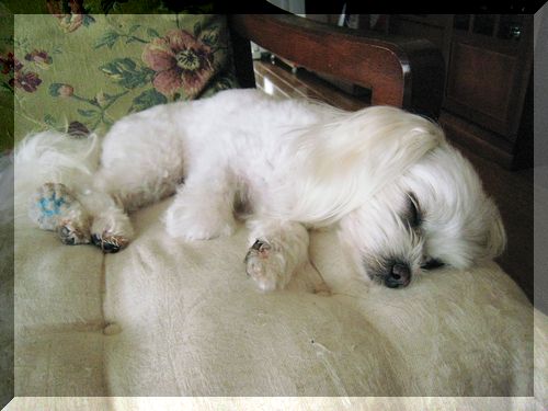 得意のポーズ、踊りながら寝ている昨日のマミでした~(*^m^*)