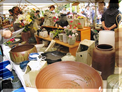 じっくり眺めていると、一日中かかってしまう「やきもの市」。