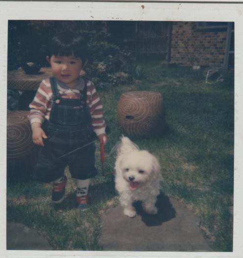 これ、今から24年ほど前の、長男と先代まみの写真です。