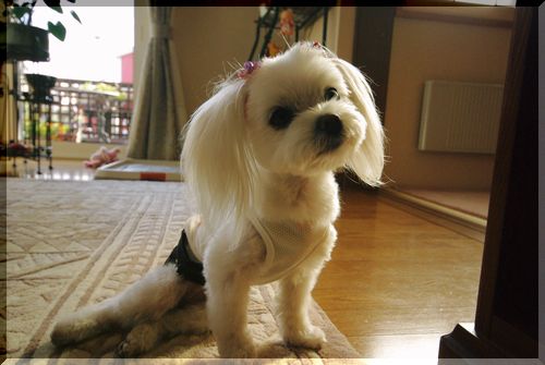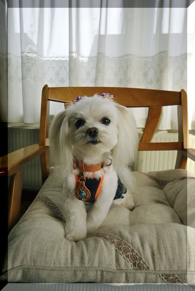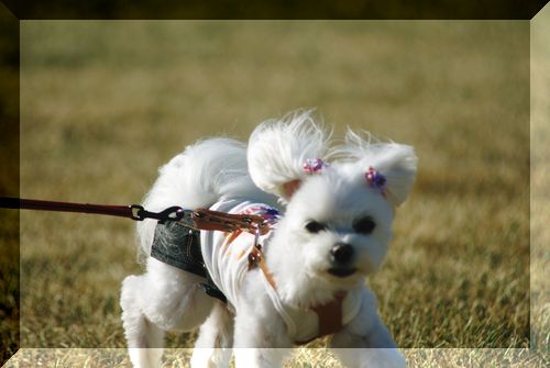 今日は風の強い日なので、マミの毛も風に流されております(^◇^;)