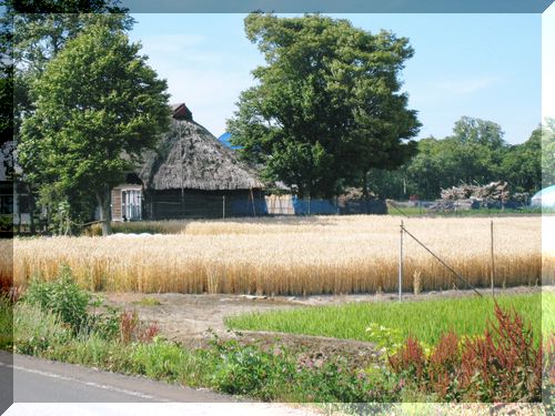麦の穂の向こうの、古い農家の佇まいがいい感じ~♪