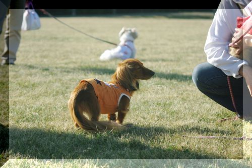夕方の公園の芝生広場は、ミニチュアダックスちゃんの集会場でした~♪