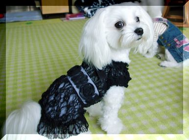 素敵な黒いレースのワンピ、桃ちゃんより先に着せてもらいました~♪