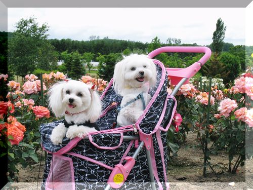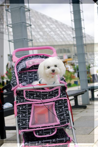 カートに乗ってるわんこは、こちらではやっぱり珍しいらしく、