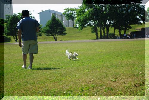 お父さんと散歩中のマルチーズの男の子と遭遇しました~♪