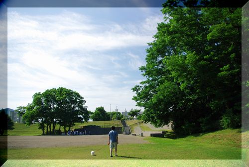 お昼前には青空が見えてきたので、マミを誘って散歩に行ってきましたよ。