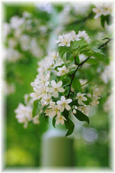 何の花でしょうか?桜のような白い花が満開でした~♪