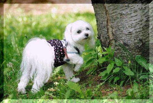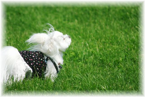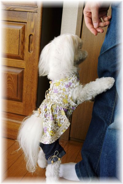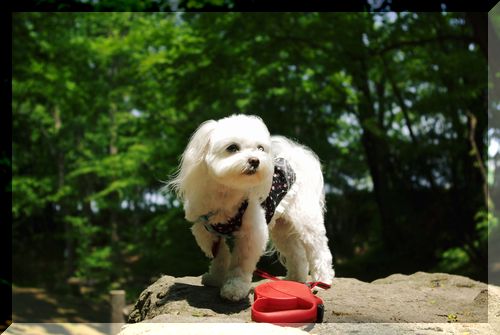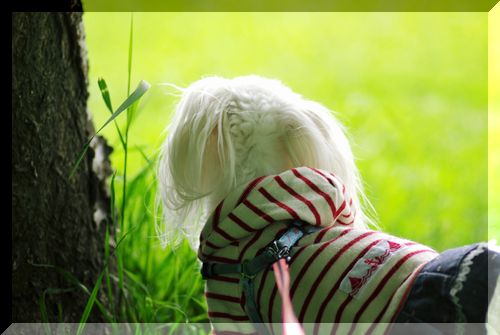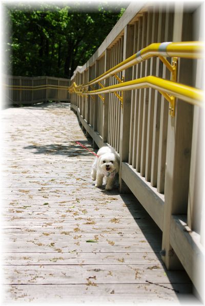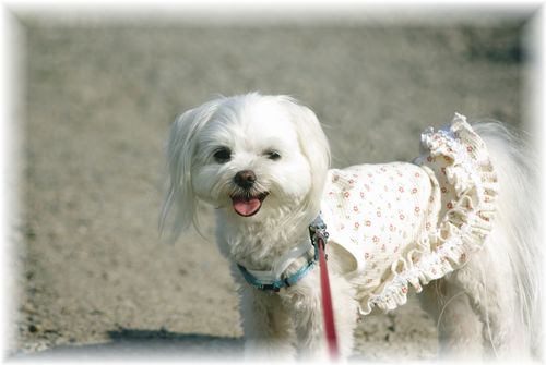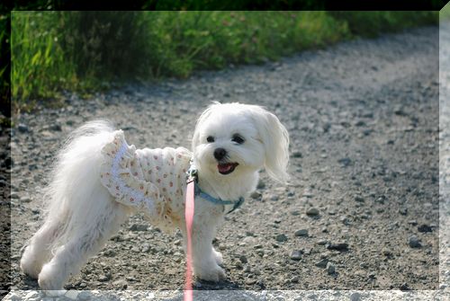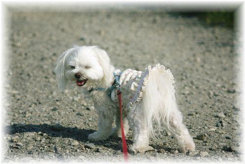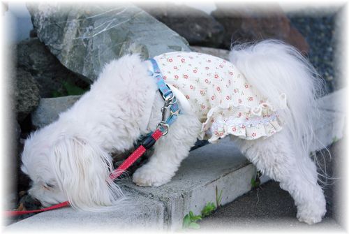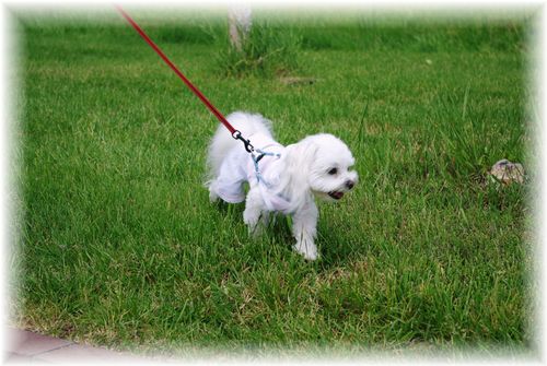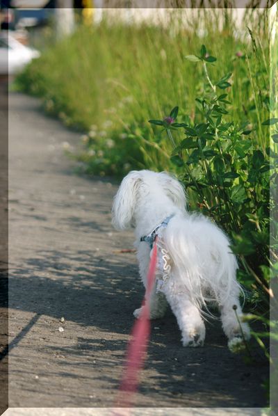 朝8時半のお散歩、マミはまだちょっと眠たげな顔(*^m^*)