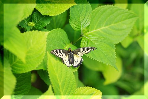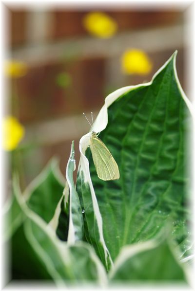 ギボウシの葉に羽を休めて、雨露をしのいでいたんでしょうか・・・。