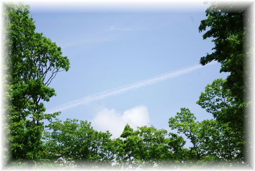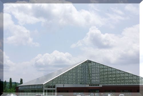 バラ園の大きなガラス張りの温室の上には、夏空が広がっていました。