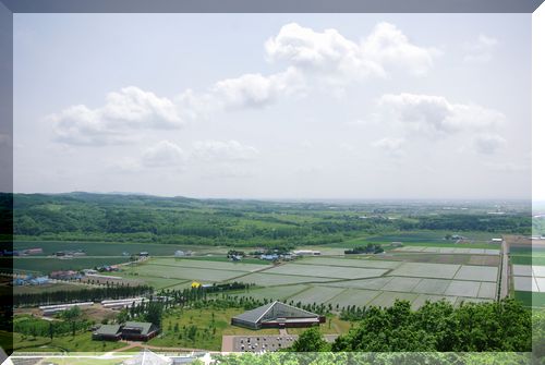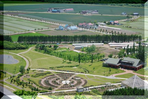 さっきまで散歩していたバラ園も、上から見下ろすとこんな感じです。