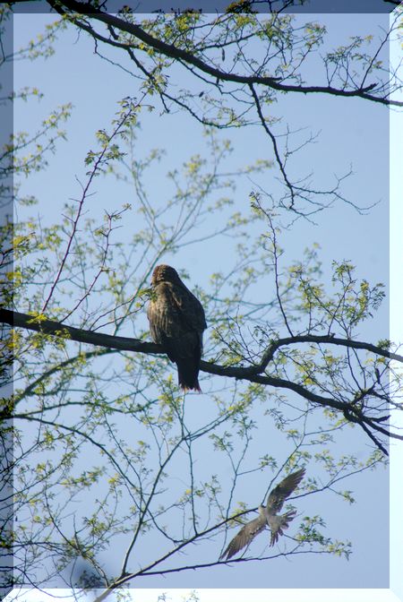 木の枝にとまった三吉さんのほかに、もう一羽の鳥が飛んできました。