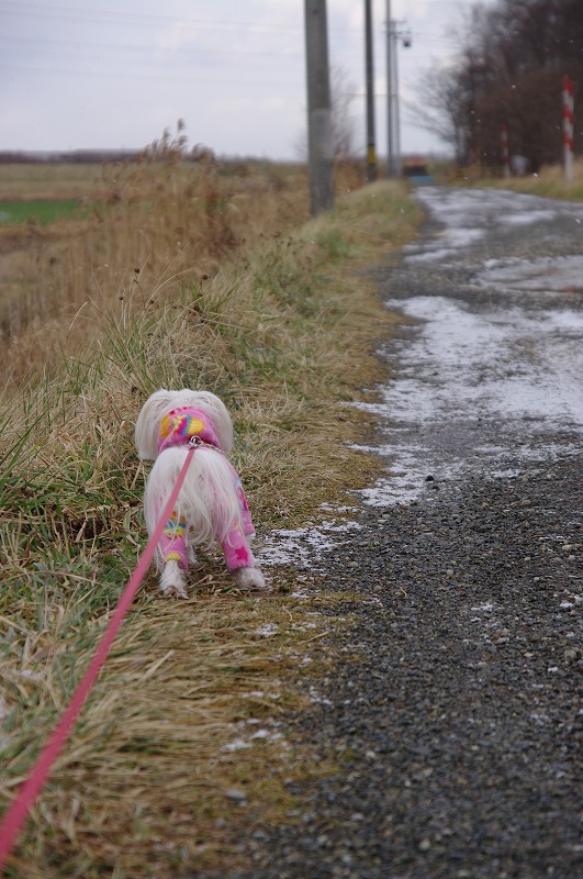 マミが外へ行きたそうにしているので、お寒い中、