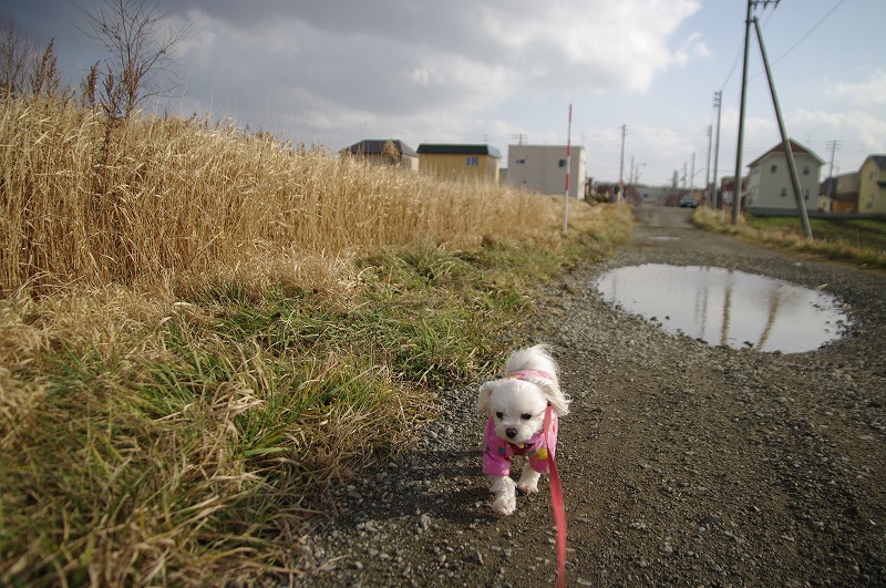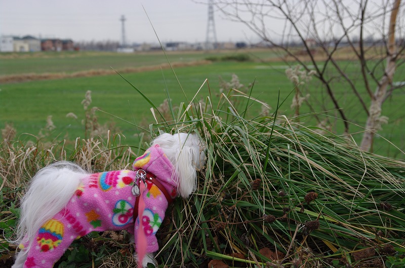 そんな強風の中、マミと一緒にご近所散歩・・・。