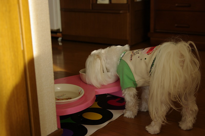 散歩から帰ってきて、朝ごはんの残りを食べつくす。