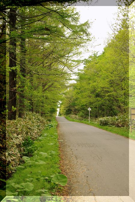 こんな森の中の道を、あたりの木々を眺めつつ、