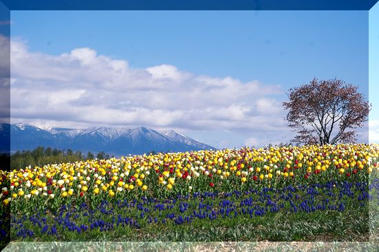 この時期、チューリップとムスカリがきれいに咲いていましたよ~♪