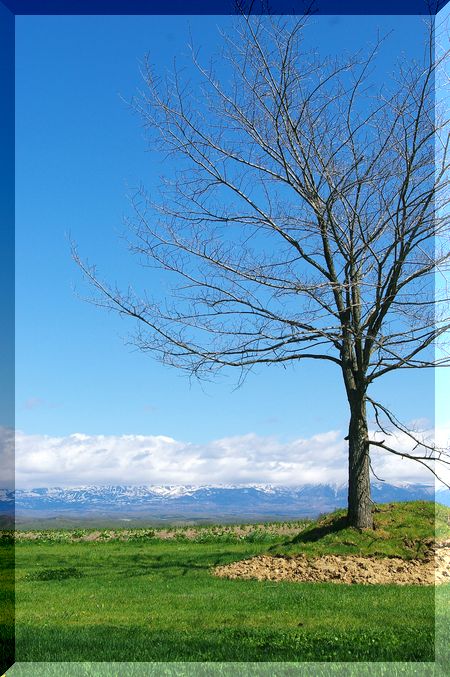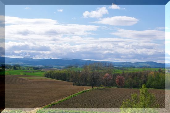 春の丘の風景を思う存分味わって、帰り道に見つけたカフェで、