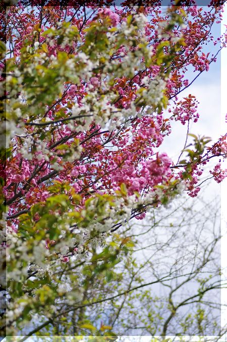 濃いピンクの八重桜、賑やかですね~(*^^*)