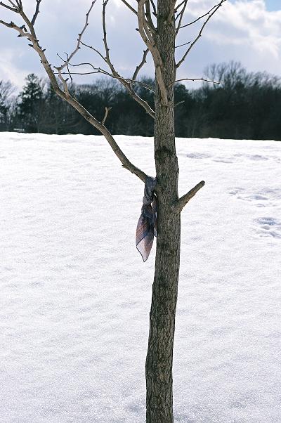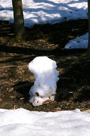 木の下に、何故かぽつんと残っている雪のかたまり。