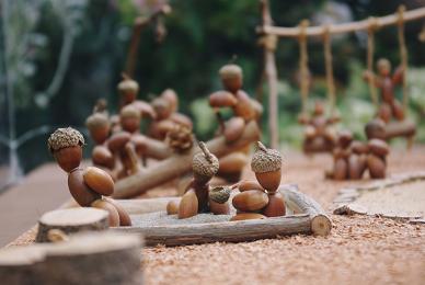 どんぐりで作った人形達が、公園でいろんな遊びをしているんですよ~♪