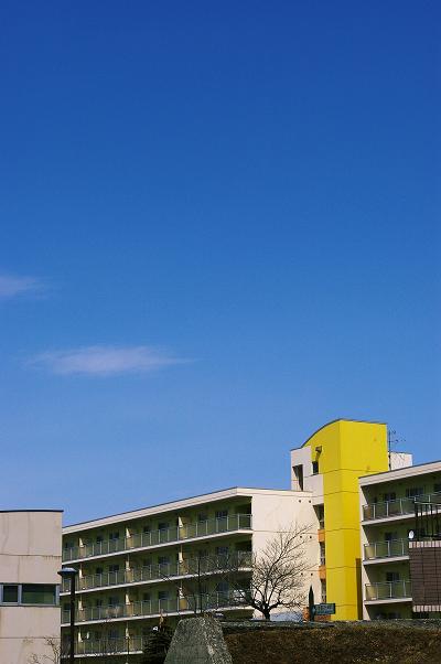 青空に、建物の黄色がくっきり映えてました。