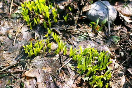 遊歩道の脇のお宅の庭には、小さな芽がたくさん出てました。