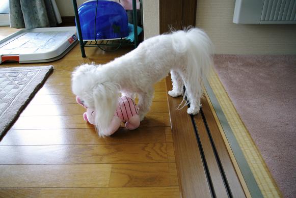 今日の餌食となったぬいぐるみを振り回し・・・