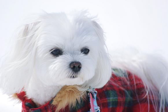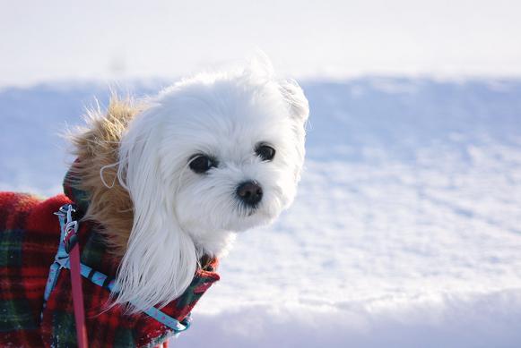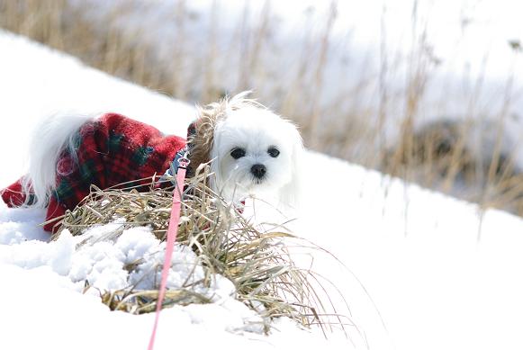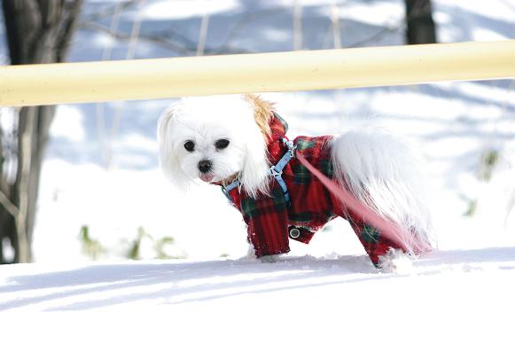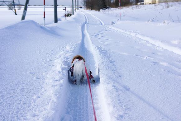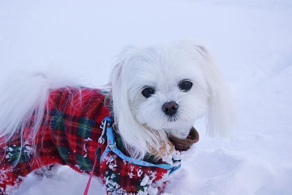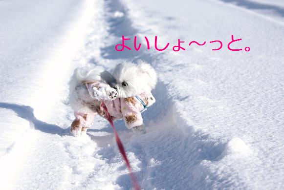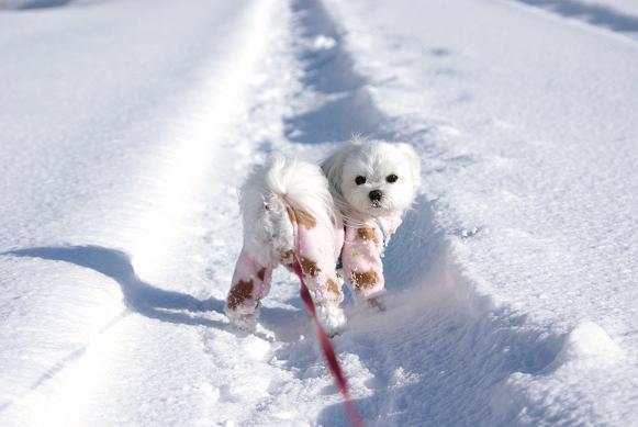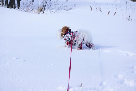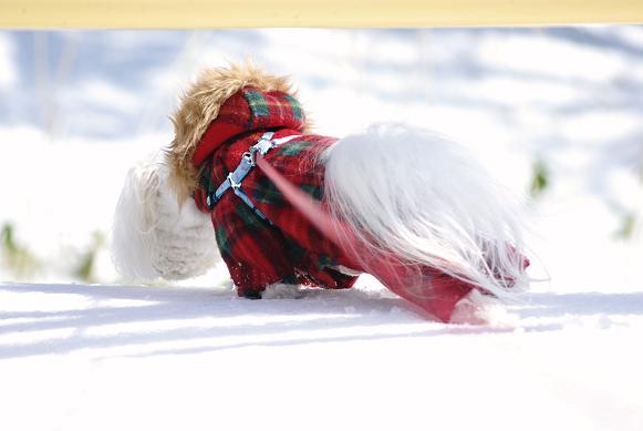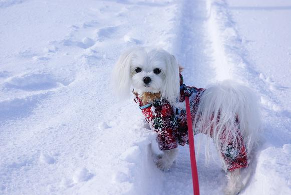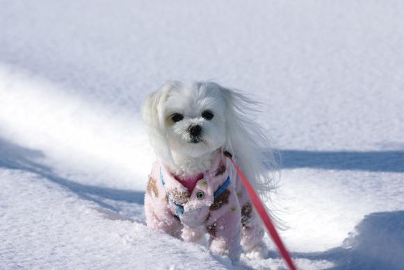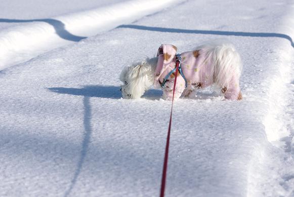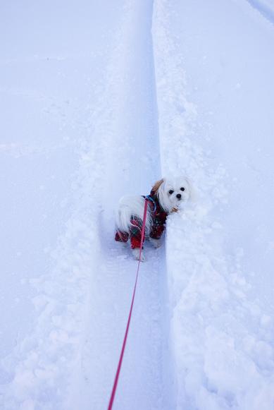 誰も歩いてない雪の上を、マミ嬢、ご機嫌にお散歩~♪