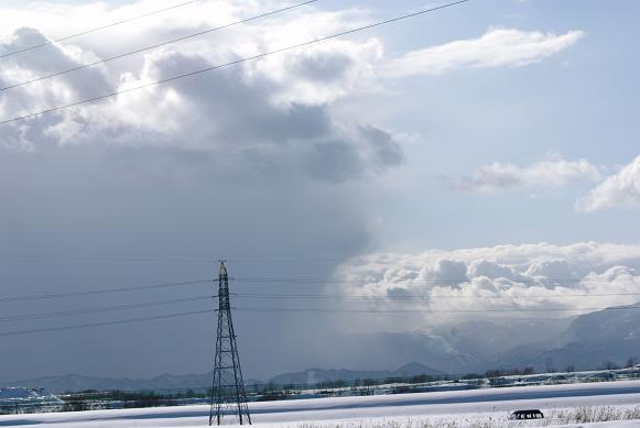 やっと雪雲がきれて、遠くの山も綺麗に見えますが・・・